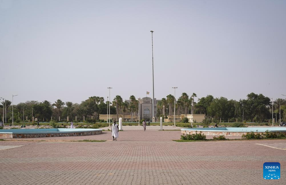 This photo taken on July 14, 2025 shows the Liberty Park and the Presidential Palace in Nouakchott, Mauritania. Nouakchott, on the edge of the Sahara Desert, is the capital of Mauritania and its political, economic, and cultural center. (Xinhua/Han Xu)