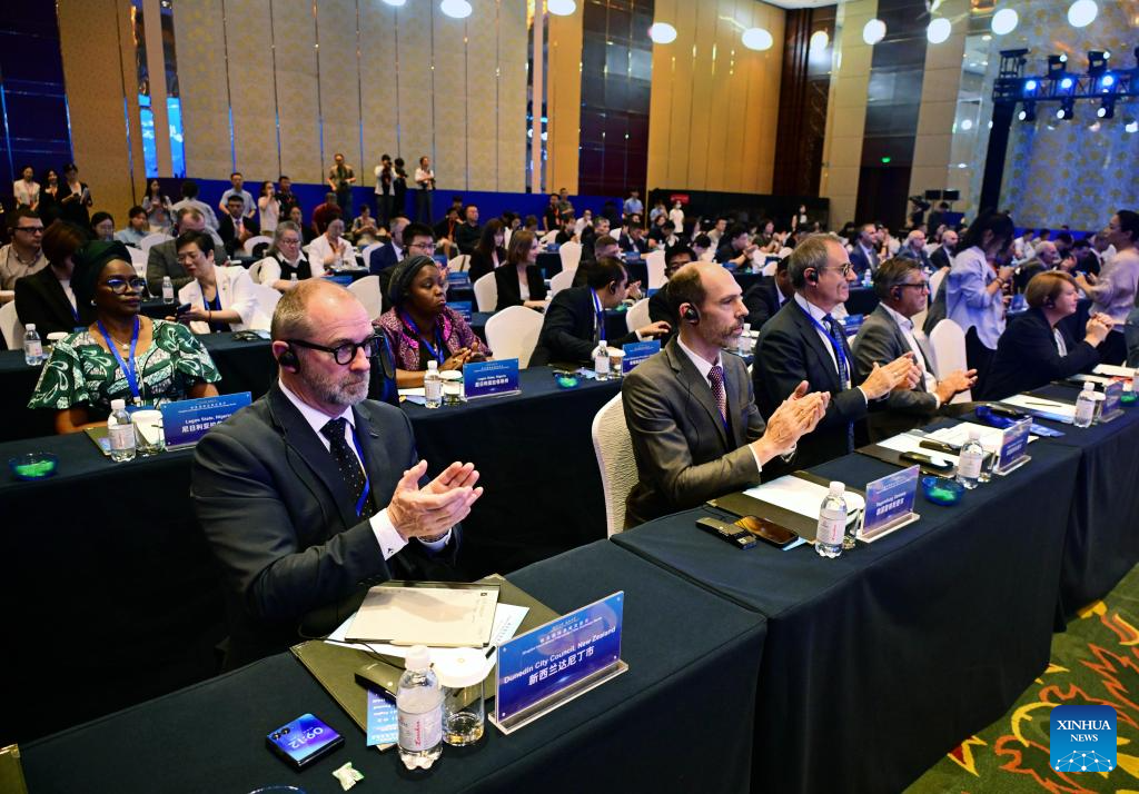 Guests attend the "Global Mayors Dialogue, Qingdao" during the Qingdao International Friendship Cities Exchange Month in Qingdao, east China's Shandong Province, July 19, 2025. Qingdao International Friendship Cities Exchange Month opened here on Saturday, bringing together representatives of 19 cities and institutions from 17 countries, aiming to expand the cultural and tourism exchanges and explore paths for industrial cooperation. (Xinhua/Li Ziheng)