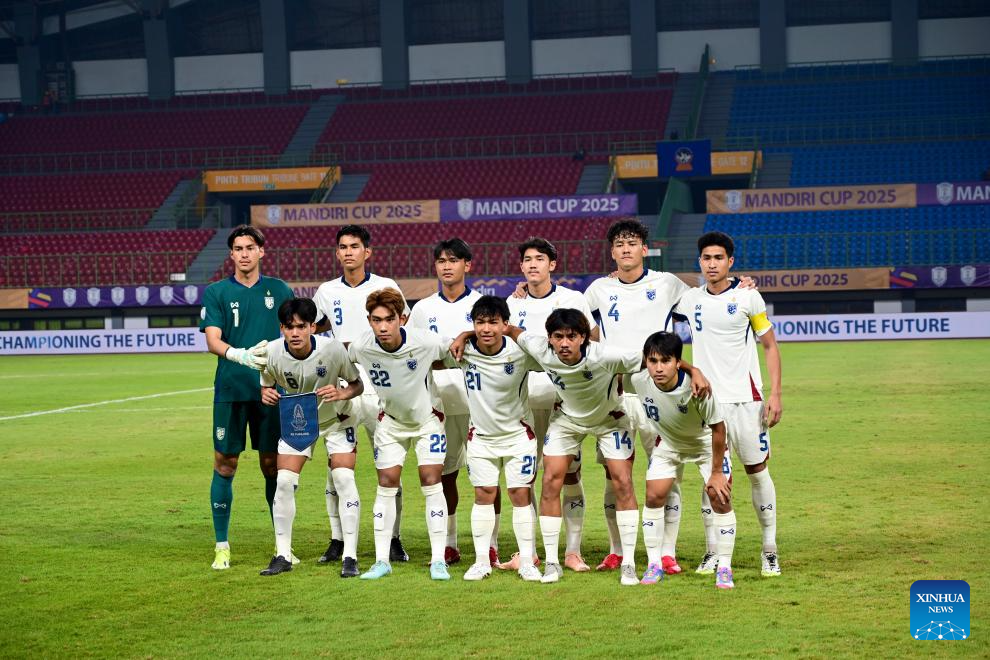 Players of Thailand pose for a group photo before ASEAN Football Federation (AFF) U23 Championship 2025 Group C match between Timor-Leste and Thailand in Bekasi, Indonesia, on July 19, 2025. (Xinhua/Zulkarnain)