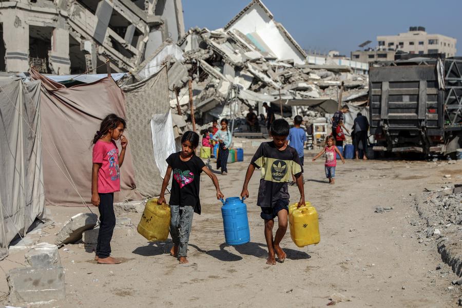 Palestinian children are seen among tents for displaced people on the shores of Gaza City, on July 18, 2025. (Photo by Rizek Abdeljawad/Xinhua)A Palestinian child is seen in a tent for displaced people on the shores of Gaza City, on July 18, 2025. (Photo by Rizek Abdeljawad/Xinhua)Palestinian children are seen among tents for displaced people on the shores of Gaza City, on July 18, 2025. (Photo by Rizek Abdeljawad/Xinhua)Palestinians leave after fetching water amid heatwave in the Sheikh Radwan area, north of Gaza City, July 17, 2025. (Photo by Rizek Abdeljawad/Xinhua)Palestinians wait to fetch water amid heatwave in the Sheikh Radwan area, north of Gaza City, July 17, 2025. (Photo by Rizek Abdeljawad/Xinhua)■
