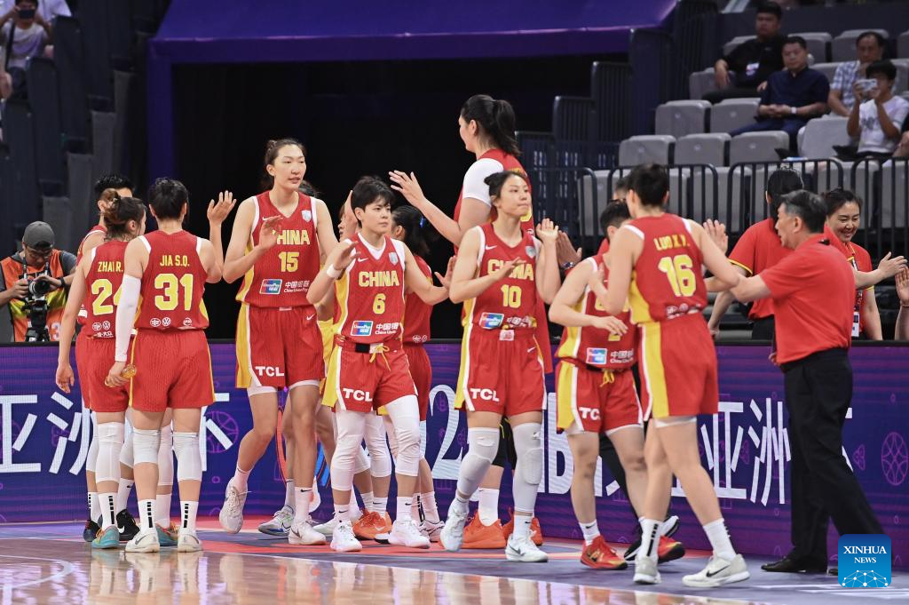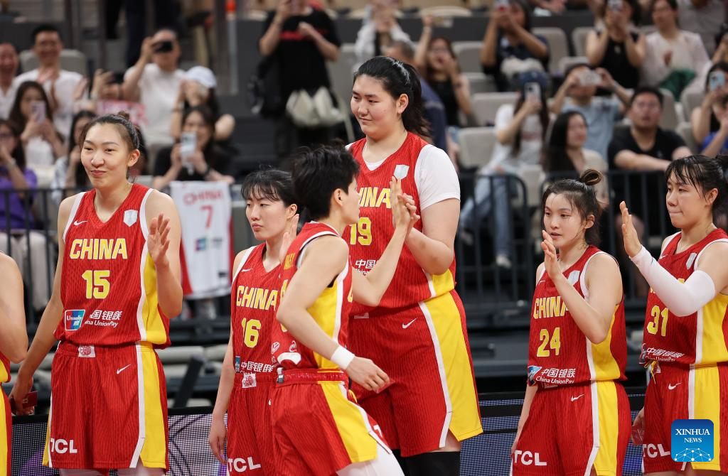 Players of China are seen before the 3rd place match between China and South Korea at the FIBA Women's Asia Cup 2025 in Shenzhen, south China's Guangdong Province, July 20, 2025. (Xinhua/Xiao Ennan)
