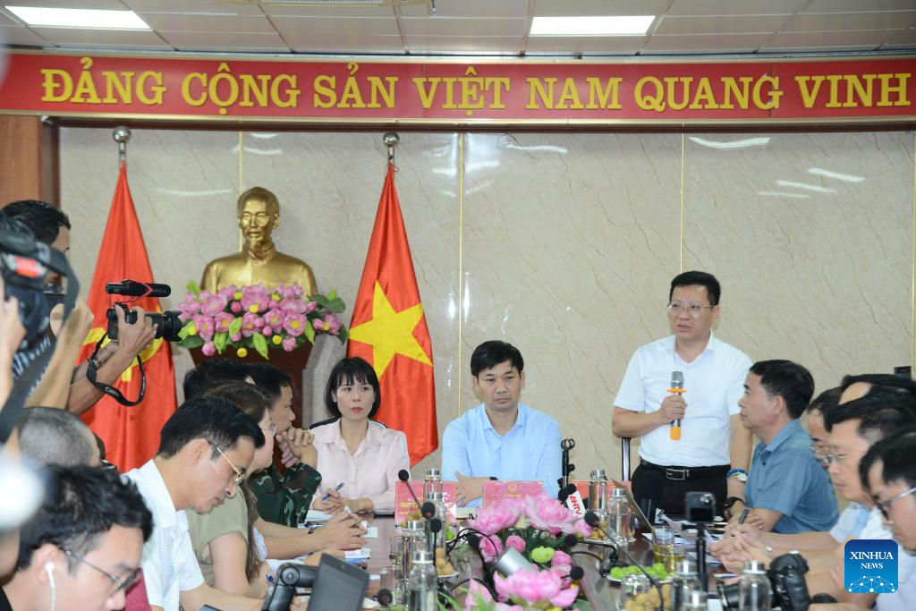 A press conference is held by the Quang Ninh provincial People's Committee in northern Vietnam's Quang Ninh province, July 20, 2025. A total of 35 people have been confirmed dead and four remain missing after a cruise ship capsized in Ha Long Bay, northern Vietnam's Quang Ninh province, local authorities said on Sunday. (VNA/Handout via Xinhua)