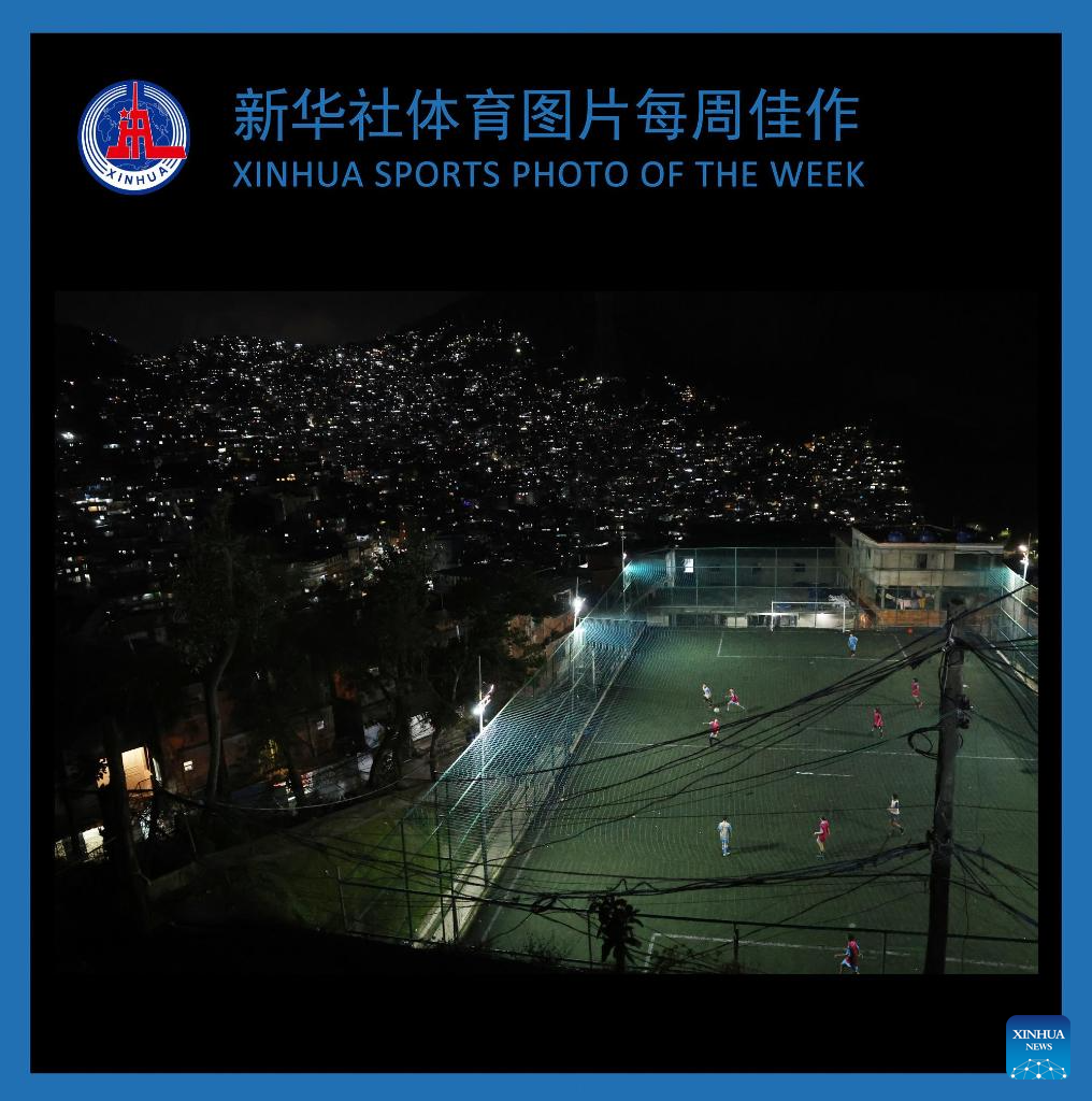 Kids play football at the Rocinha favela in Rio De Janeiro, Brazil, July 16, 2025. (Xinhua/Yao Dawei)