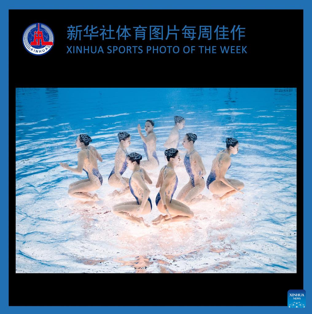 Team China perform during the team free final of artistic swimming at the World Aquatics Championships in Singapore, July 20, 2025. (Xinhua/Xia Yifang)