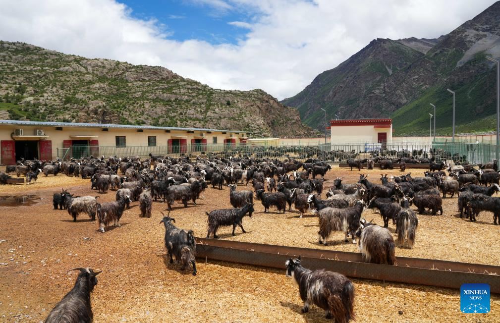 The constant flow of glacial meltwater and rich medicinal herb resources make the county of Banbar an ideal place to raise black goats. Since 2016, about 11.96 million yuan (1.67 million U.S. dollars) has been invested here in black goat breeding, with more than 6,200 breeding goats in stock. (Xinhua/Jigme Dorje)