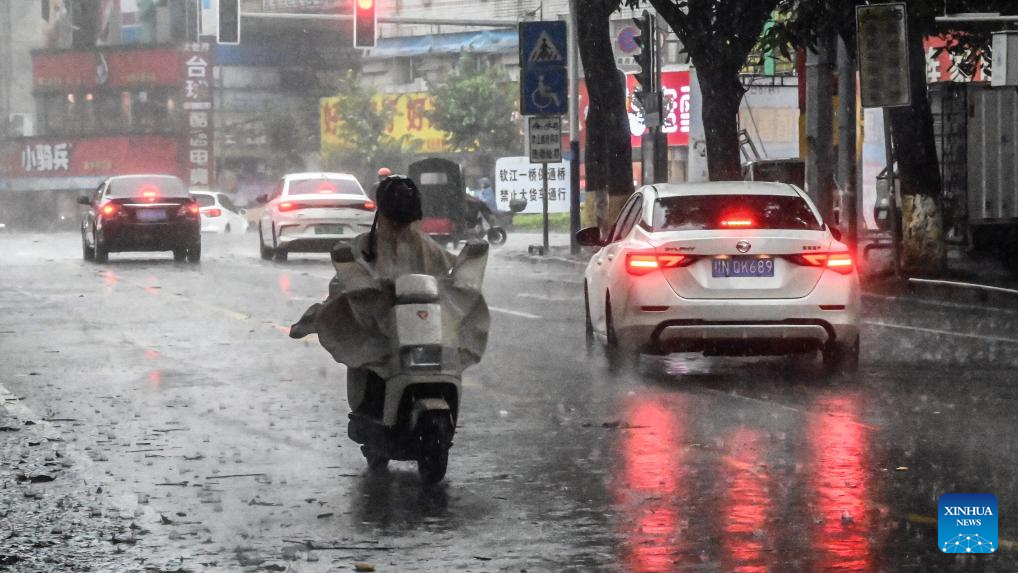 Vehicles run in the rain in Qinzhou, south China's Guangxi Zhuang Autonomous Region, July 21, 2025.