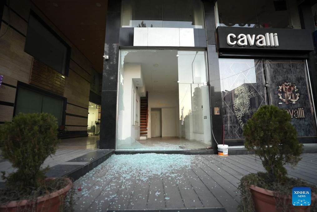 A damaged store is seen following a conflict between Druze fighters and Bedouin tribal militants in Sweida city, southern Syria, July 17, 2025. A ceasefire agreement brokered in southern Syria has brought a fragile calm to Sweida province after eight days of intense fighting, with human rights groups reporting the full implementation of the deal on Monday. (Str/Xinhua)