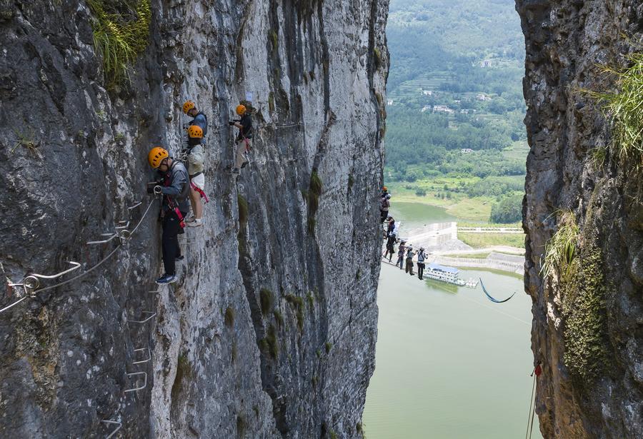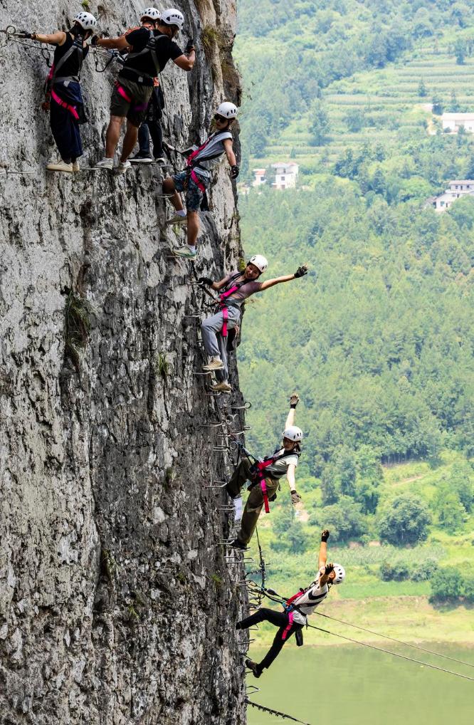 In another scenic area along the Enshi section of the Qingjiang River, a new "via ferrata" course has drawn some 1,000 visitors since its opening in early May. The route is especially popular among young travelers and families, according to the administration of the scenic area.