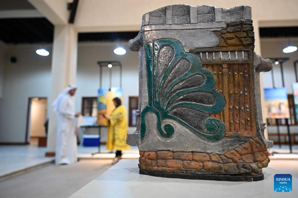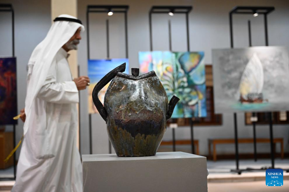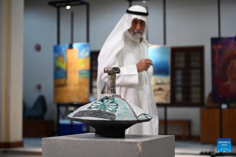 This photo taken on July 21, 2025 shows an exquisite artwork displayed at the "Kuwait Antiquities in Colors" exhibition in Kuwait City, Kuwait. Kuwait's National Council for Culture, Arts, and Letters held the summer art exhibition with 38 artworks of 30 artists. The exhibition will last until July 27. (Photo by Asad/Xinhua)