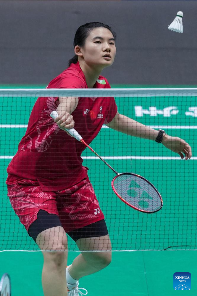Gao Fangjie of China competes during the women's singles round of 32 match between Gao Fangjie of China and Julie Dawall Jakobsen of Denmark at the China Open 2025 badminton tournament in Changzhou, east China's Jiangsu Province, July 22, 2025. (Xinhua/Li Bo)
