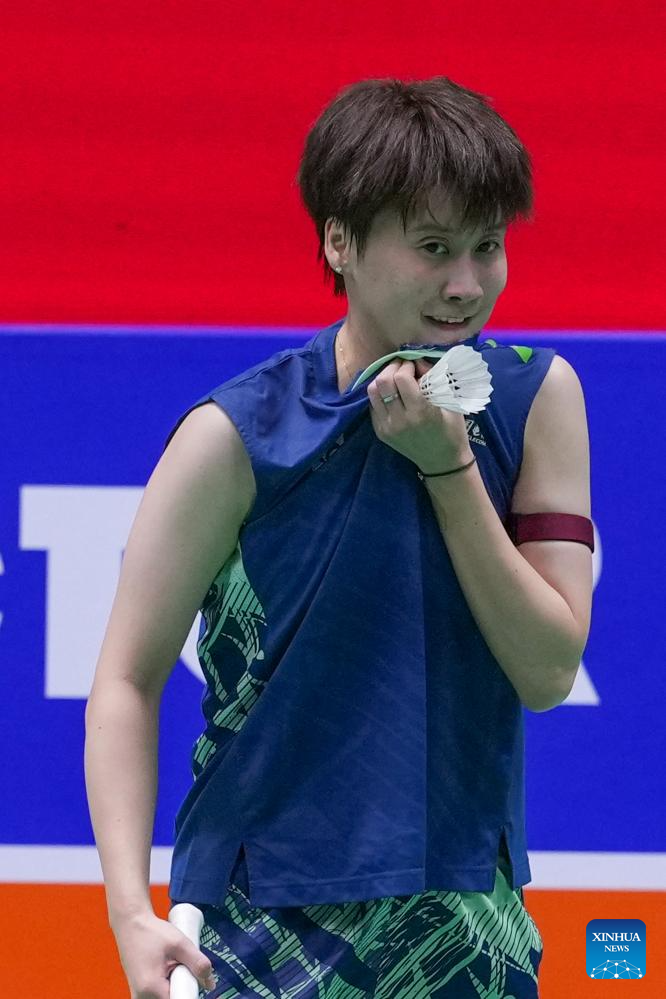 Chen Yufei of China reacts during the women's singles round of 32 match between Chen Yufei of China and Kim Ga Eun of South Korea at the China Open 2025 badminton tournament in Changzhou, east China's Jiangsu Province, July 22, 2025. (Xinhua/Li Bo)