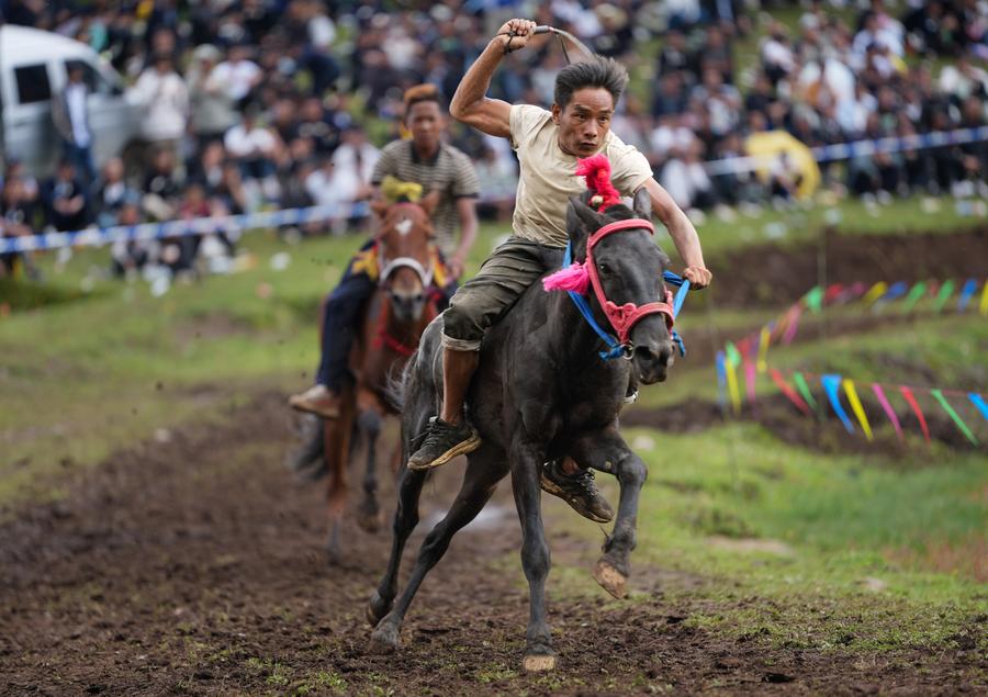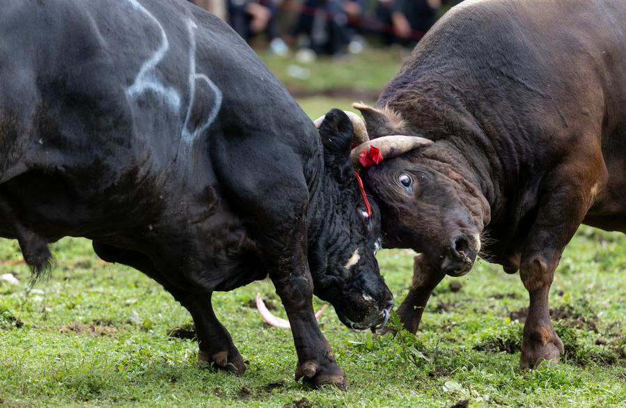 People dressed in traditional costumes of Yi ethnic group parade on the opening ceremony of a torch festival in Butuo County, southwest China's Sichuan Province, July 22, 2025. (Xinhua/Jiang Hongjing)A singer of Yi ethnic group performs on the opening ceremony of a torch festival in Butuo County, southwest China's Sichuan Province, July 22, 2025. (Xinhua/Jiang Hongjing)Bulls fight during a torch festival in Longtan Township, Butuo County, southwest China's Sichuan Province, July 21, 2025. (Xinhua/Jiang Hongjing)People race horses during a torch festival in Longtan Township, Butuo County, southwest China's Sichuan Province, July 21, 2025. (Xinhua/Jiang Hongjing)People wrestle during a torch festival in Longtan Township, Butuo County, southwest China's Sichuan Province, July 21, 2025. (Xinhua/Jiang Hongjing)■