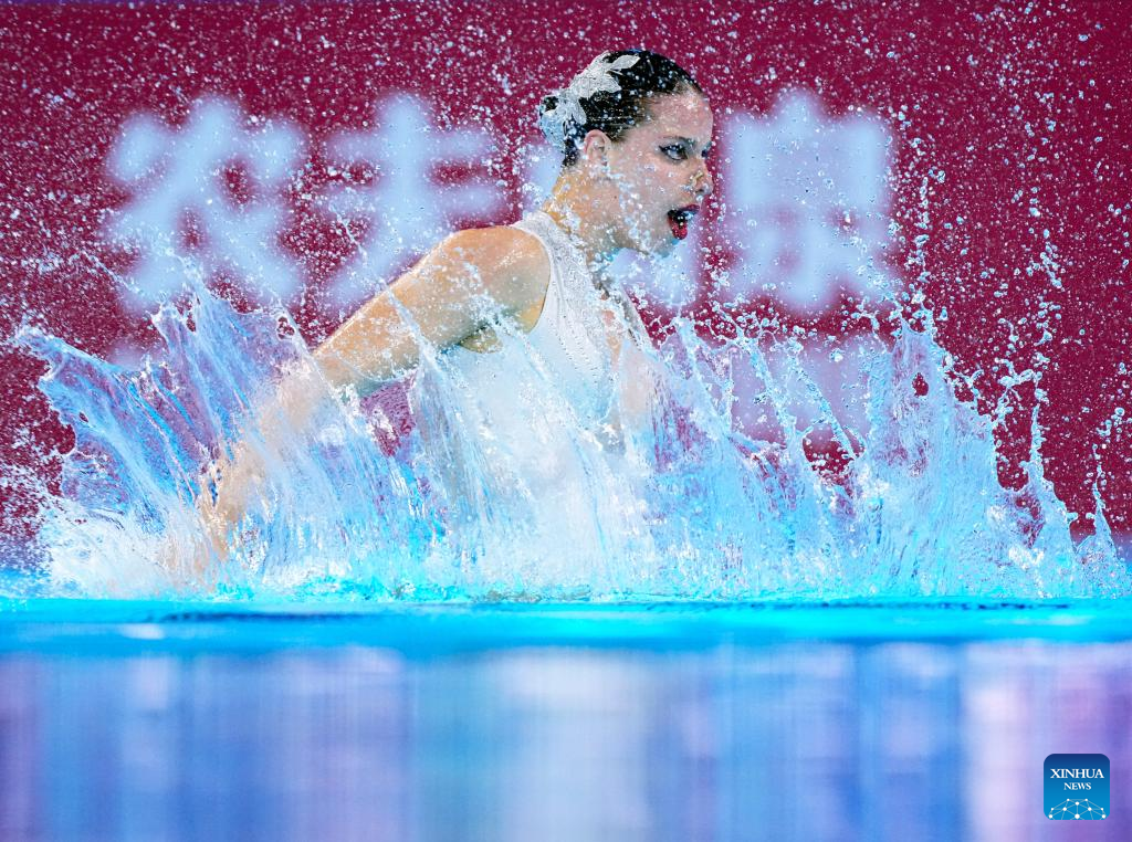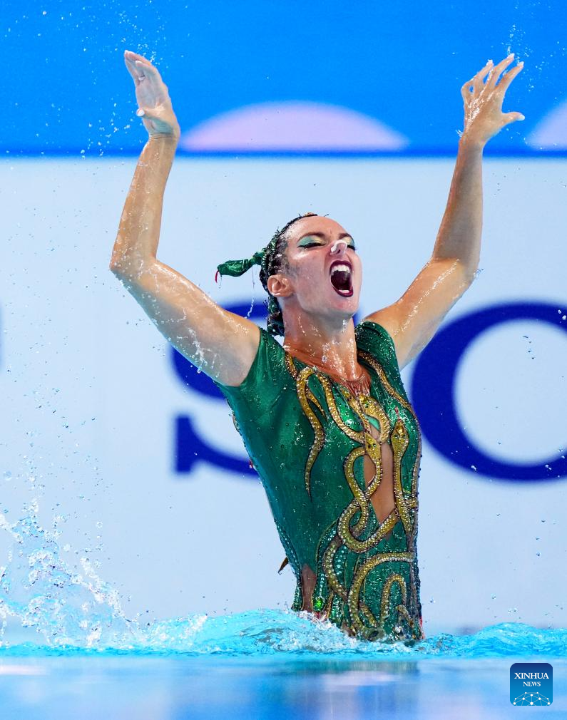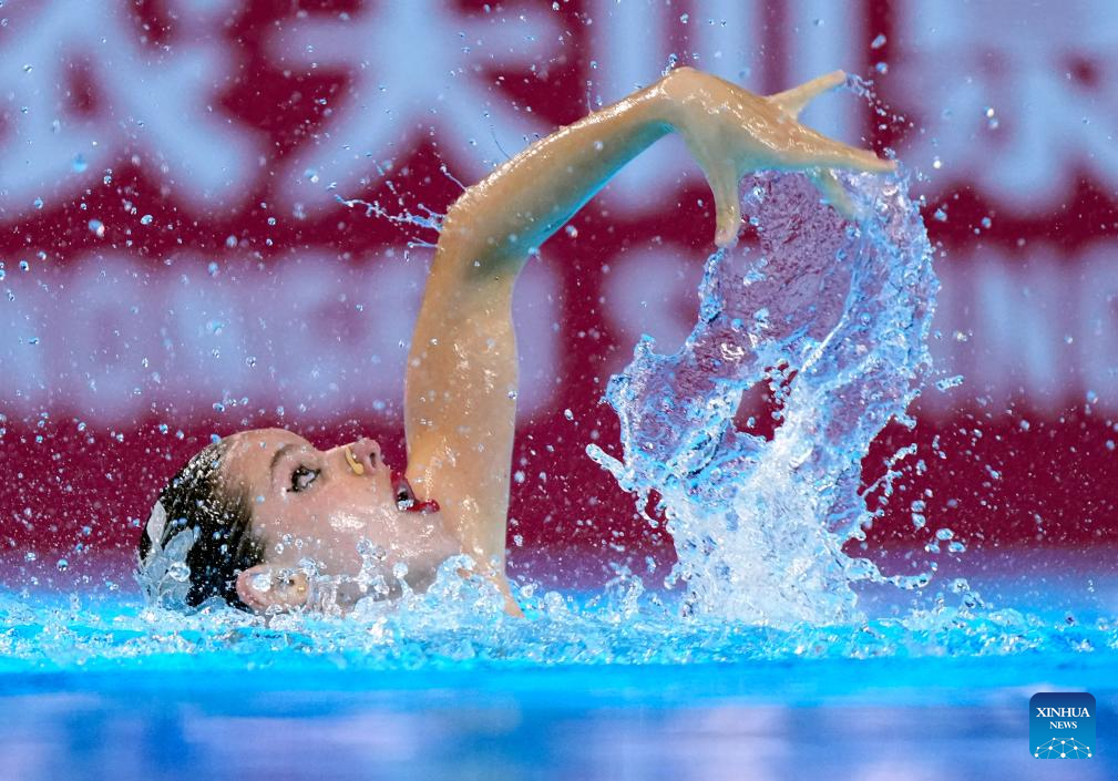 Iris Tio Casas of Spain performs during the women's solo free final of artistic swimming at the World Aquatics Championships in Singapore, July 22, 2025. (Xinhua/Xue Yuge)