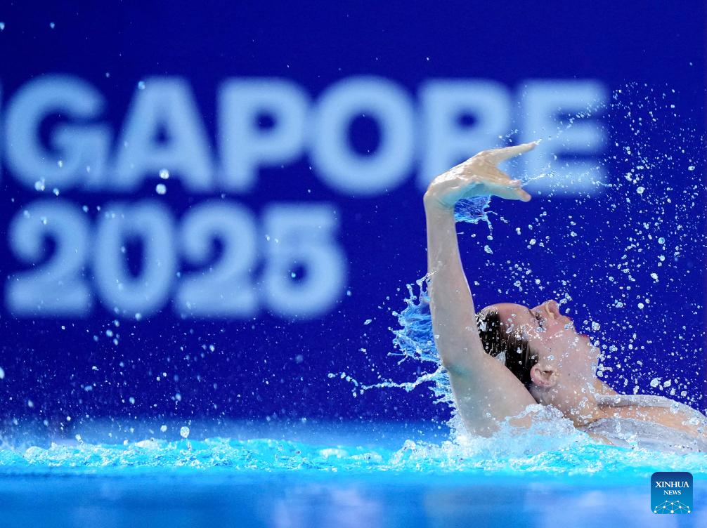 Xu Huiyan of China performs during the women's solo free final of artistic swimming at the World Aquatics Championships in Singapore, July 22, 2025. (Xinhua/Xue Yuge)