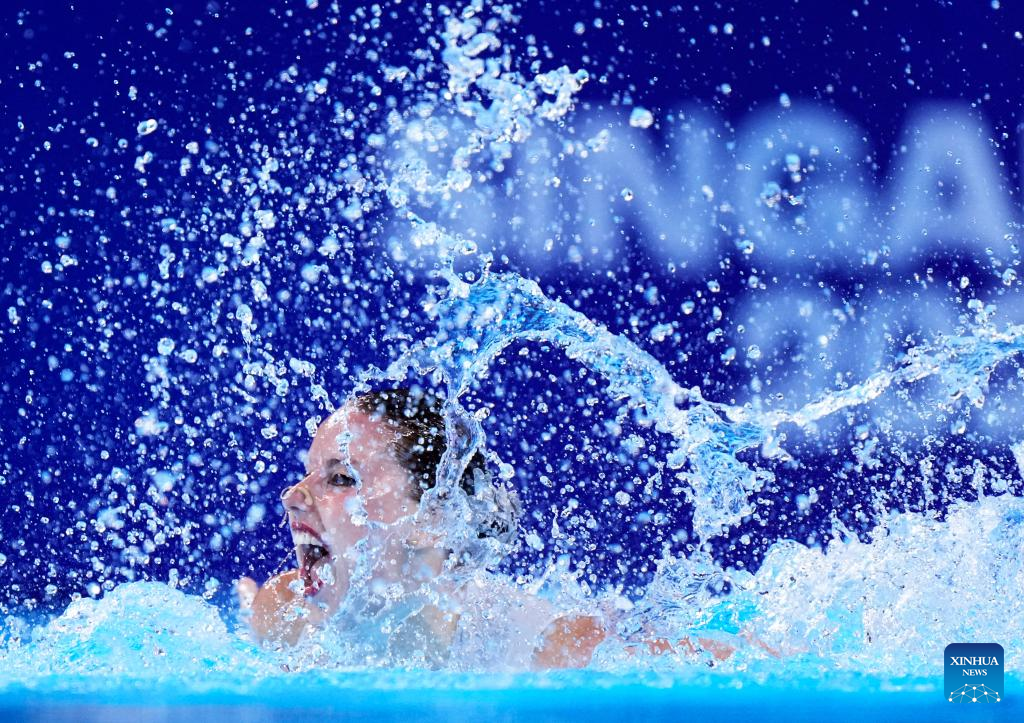 Klara Bleyer of Germany performs during the women's solo free final of artistic swimming at the World Aquatics Championships in Singapore, July 22, 2025. (Xinhua/Xue Yuge)