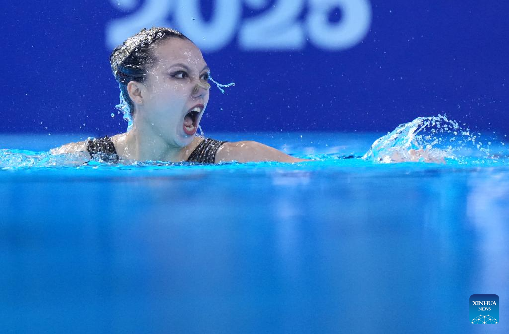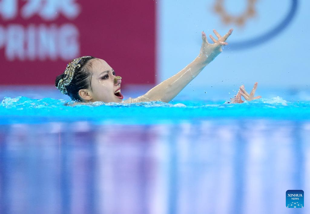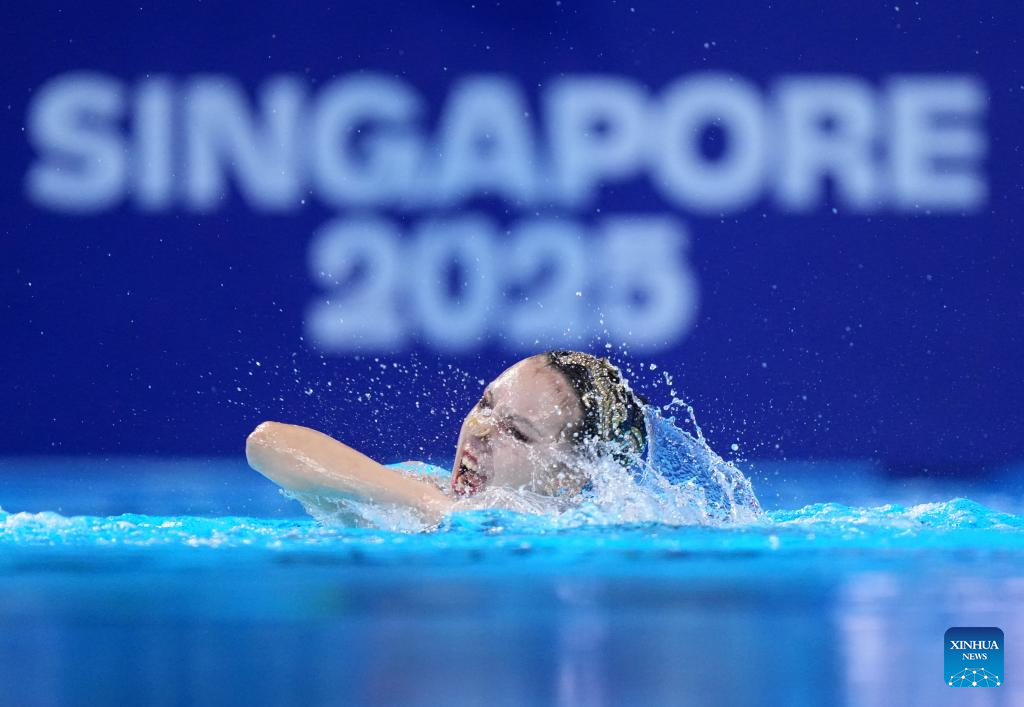 Xu Huiyan of China performs during the women's solo free final of artistic swimming at the World Aquatics Championships in Singapore, July 22, 2025. (Xinhua/Luo Yuan)