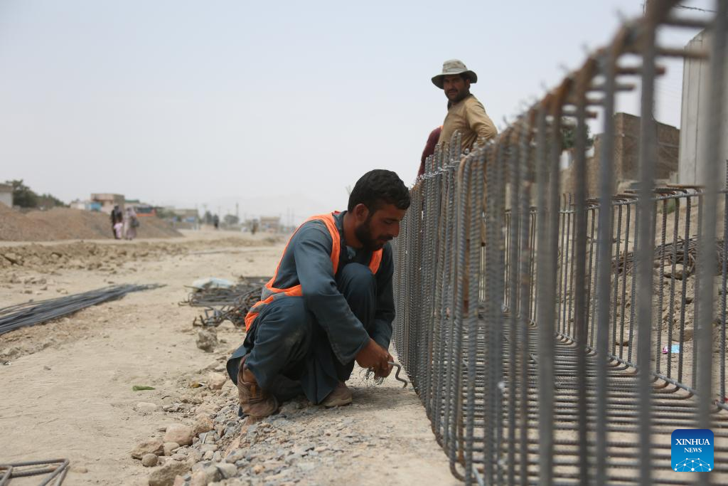 Afghan laborers build a road construction project in Kabul, Afghanistan, July 23, 2025. The Afghan interim government's national procurement commission has approved six new development projects worth 828 million afghani (about 12 million U.S. dollars), according to an official statement released Tuesday. (Photo by Saifurahman Safi/Xinhua)