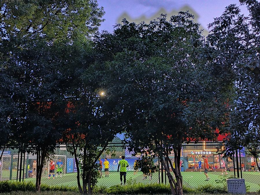 As daytime temperatures soar, many sports enthusiasts are shifting their workouts into the evening. In Wuxi's Binhu District, lighted football fields are packed with amateur matches and children's training sessions deep into the night, fueled in part by the runaway success of the local "Su Chao" - a grassroots football league phenomenon.