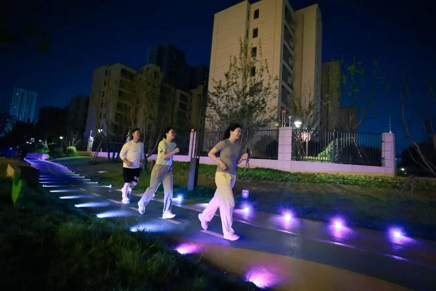 "Night runs used to be risky with dim paths," said Zhou Qian, a local resident. "Now the track lights up with every step and syncs with my phone to show my heart rate and pace. It's safer and a lot more fun."