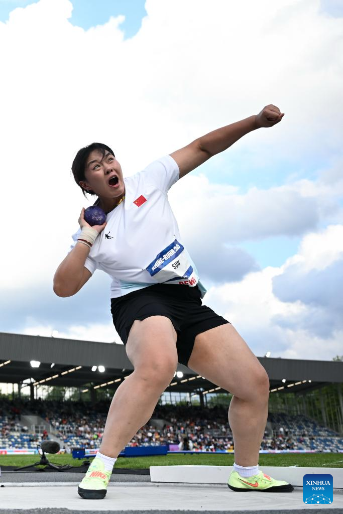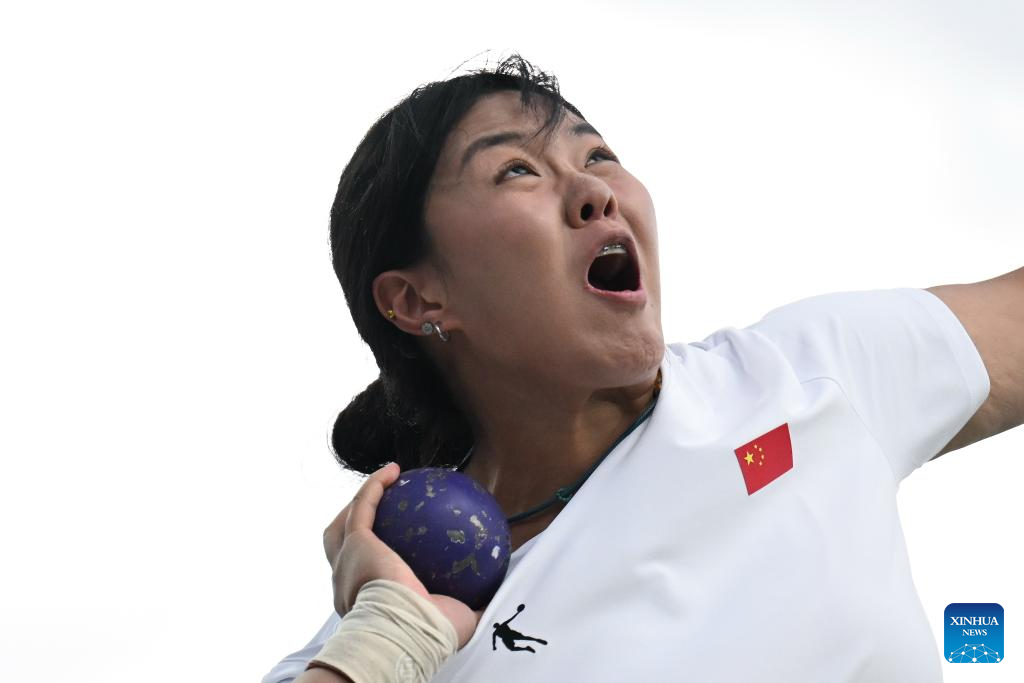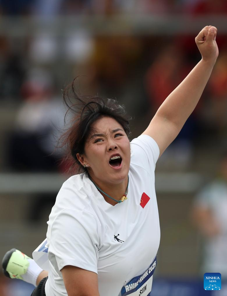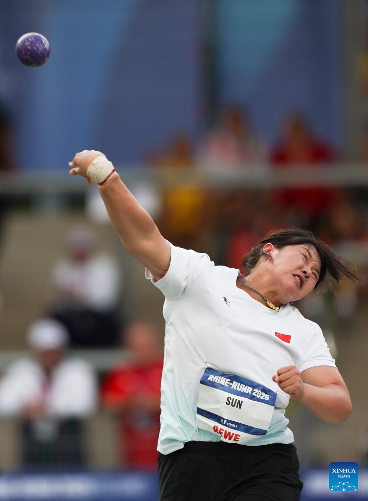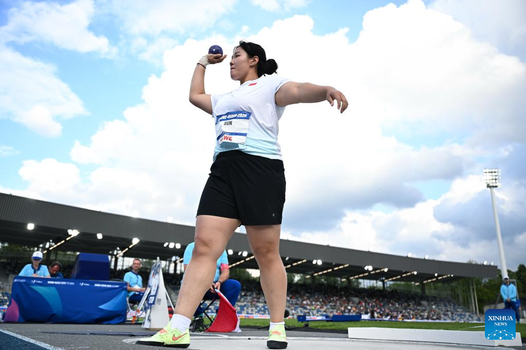 Sun Yue of China competes during the women's shot put final at the Rhine-Ruhr 2025 FISU World University Games in Bochum, Germany, July 22, 2025. (Xinhua/Lian Yi)