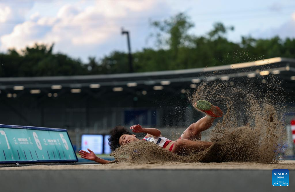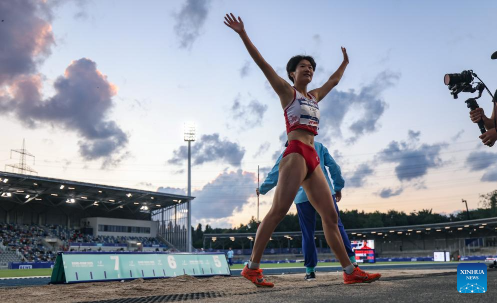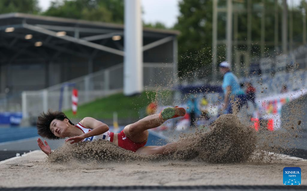 Xiong Shiqi of China competes during the women's long jump final at the Rhine-Ruhr 2025 FISU World University Games in Bochum, Germany, July 22, 2025. (Xinhua/Lian Yi)