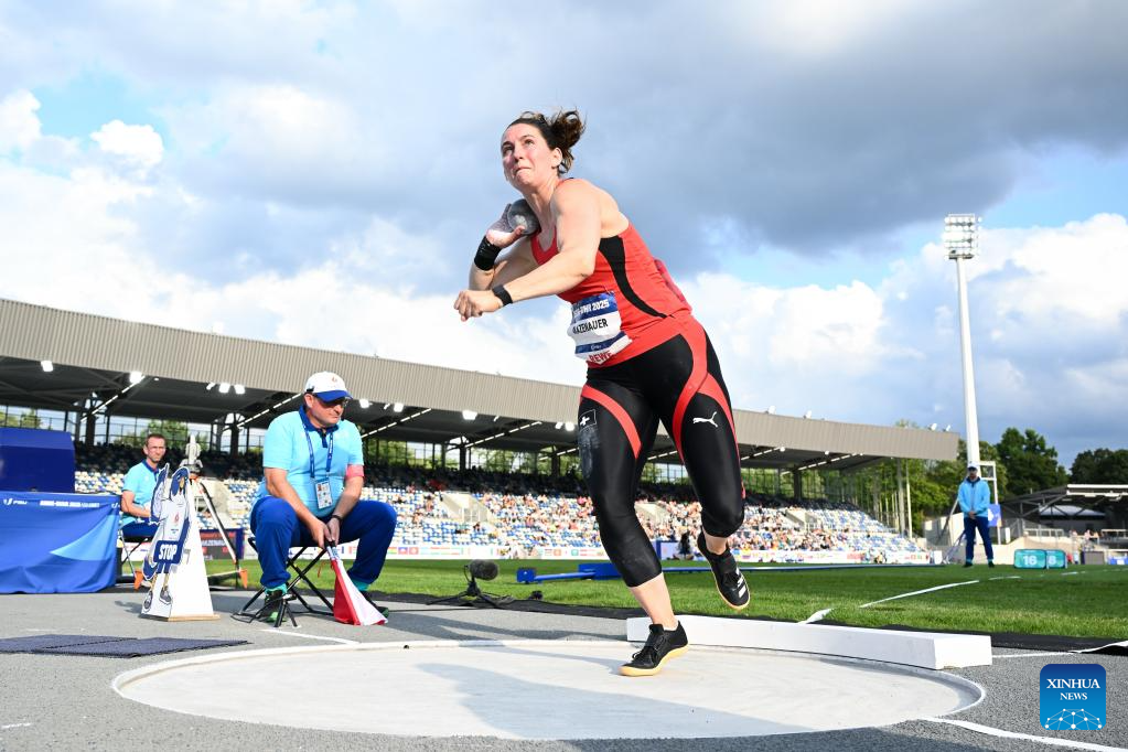 Miryam Mazenauer of Switzerland competes during the women's shot put final at the Rhine-Ruhr 2025 FISU World University Games in Bochum, Germany, July 22, 2025. (Xinhua/Hu Xingyu)