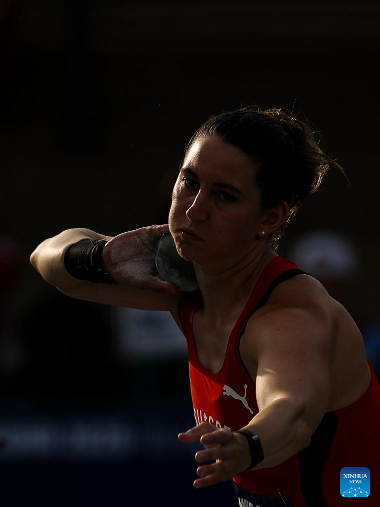 Miryam Mazenauer of Switzerland competes during the women's shot put final at the Rhine-Ruhr 2025 FISU World University Games in Bochum, Germany, July 22, 2025. (Xinhua/Lian Yi)