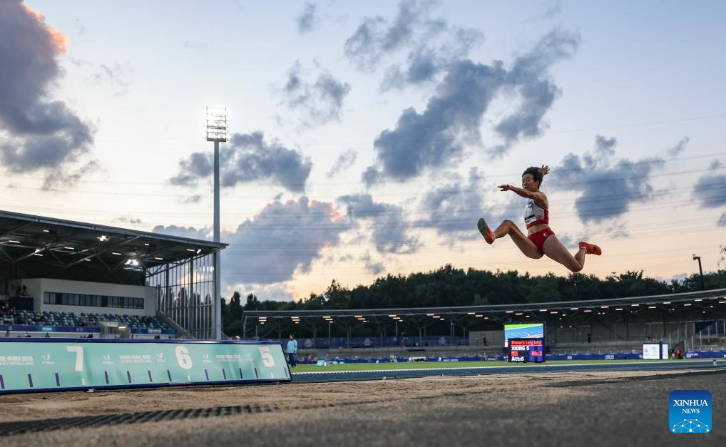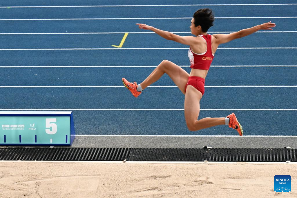 Xiong Shiqi of China competes during the women's long jump final at the Rhine-Ruhr 2025 FISU World University Games in Bochum, Germany, July 22, 2025. (Xinhua/Hu Xingyu)