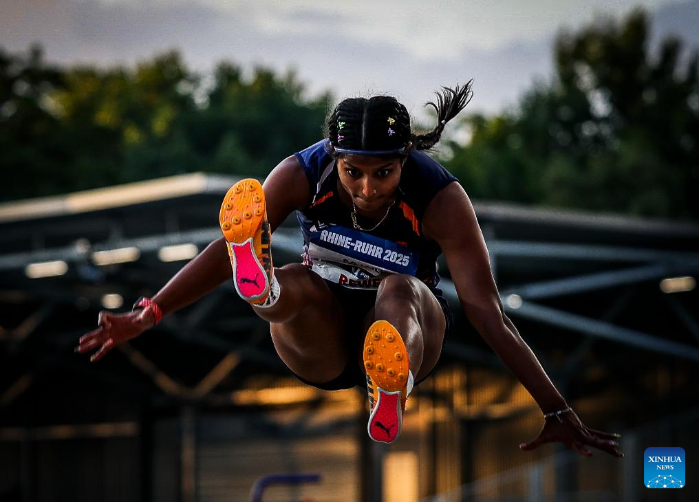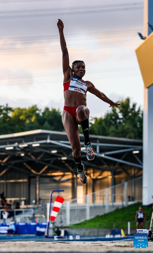 Agate Sousa of Portugal competes during the women's long jump final at the Rhine-Ruhr 2025 FISU World University Games in Bochum, Germany, July 22, 2025. (Xinhua/Hu Xingyu)