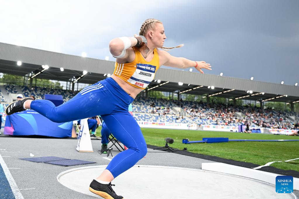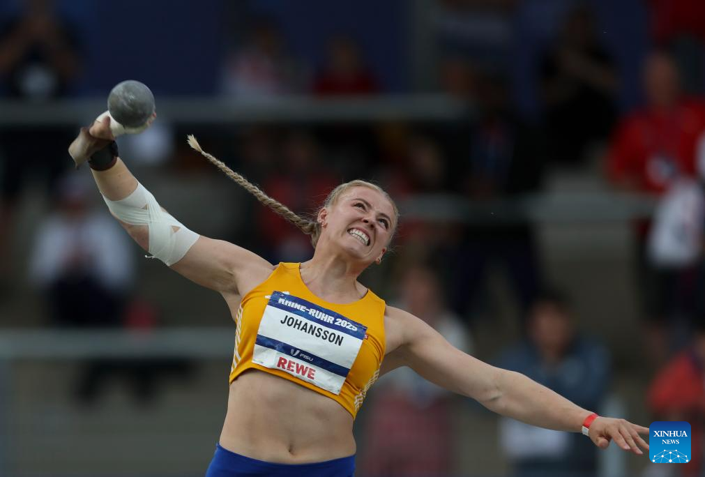 Axelina Elin Signe Johansson of Sweden competes during the women's shot put final at the Rhine-Ruhr 2025 FISU World University Games in Bochum, Germany, July 22, 2025. (Xinhua/Hu Xingyu)