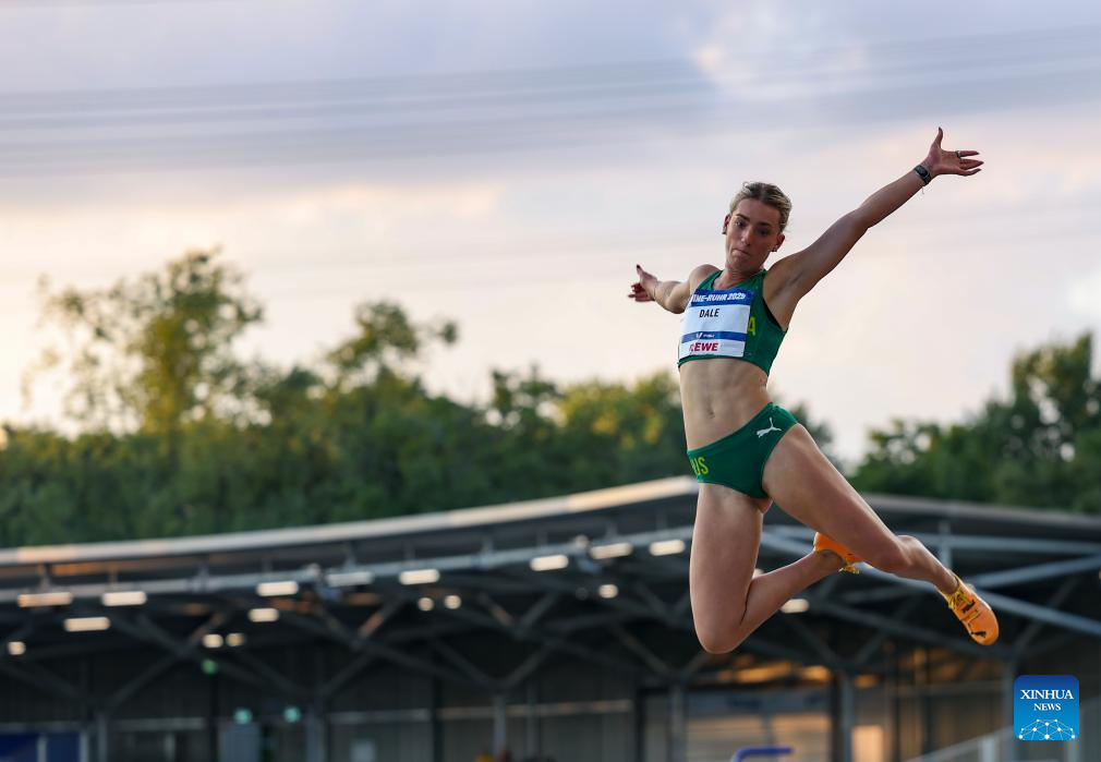 Samantha Dale of Australia competes during the women's long jump final at the Rhine-Ruhr 2025 FISU World University Games in Bochum, Germany, July 22, 2025. (Xinhua/Hu Xingyu)