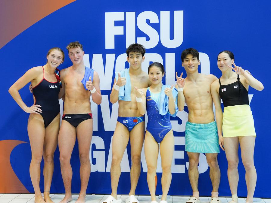 ESSEN, Germany, July 23 (Xinhua) -- Chinese divers swept all five remaining events and the United States captured seven of nine swimming gold medals as the aquatics contests came to a close on Wednesday at the Rhine-Ruhr World University Games.