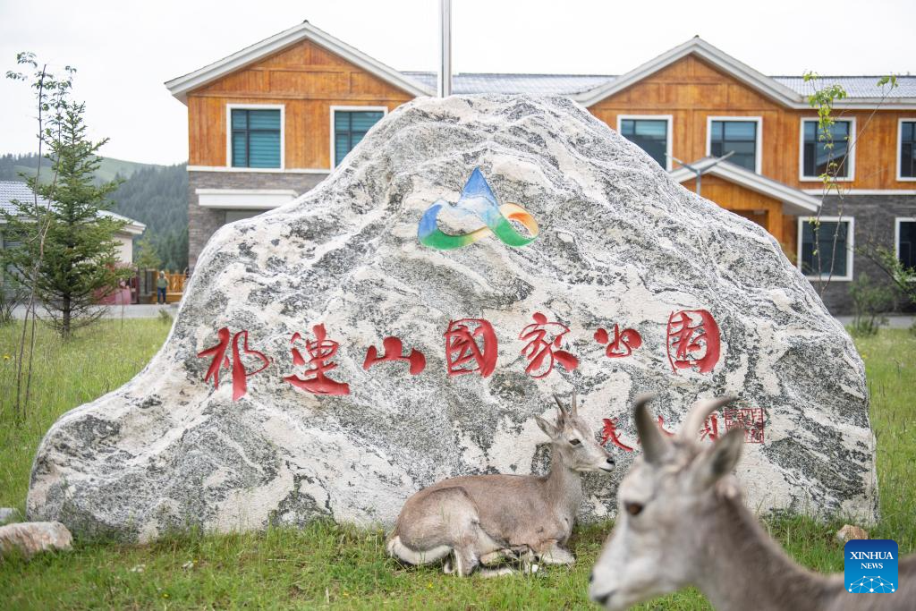 A rescued bharal grazes at the Wildlife Rehabilitation and Breeding Station in Qilian Mountain National Park in northwest China's Qinghai Province, July 23, 2025. The Wildlife Rehabilitation and Breeding Station sits at an altitude of nearly 3,000 meters at the foot of the Qilian Mountains. The station is mainly responsible for wildlife rescue, population monitoring, post-release tracking, public education, and nature-based learning.