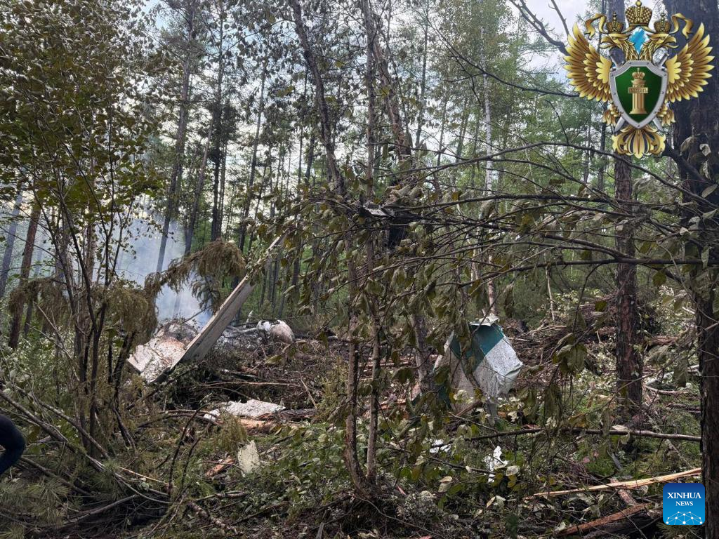 This photo released by the Far Eastern Transport Prosecutor's Office of Russia on July 24, 2025 shows the crash site of a passenger plane in Amur Region, Russia. The An-24 aircraft, operated by Angara Airlines, was en route from Khabarovsk to Tynda with a stopover in Blagoveshchensk. There were 43 passengers on board, along with six crew members, Amur Oblast Governor Vasily Orlov said on social media Telegram. Initial investigation has shown no survivors, according to local emergency services. (Xinhua)