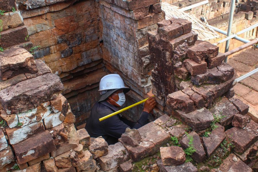 PHNOM PENH, July 24 (Xinhua) -- Archaeologists have been restoring two ruined brick towers of Pre Rup temple in Cambodia's famed Angkor Archaeological Park, the APSARA National Authority (ANA) said in a news release on Wednesday.