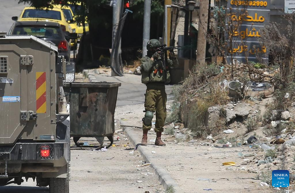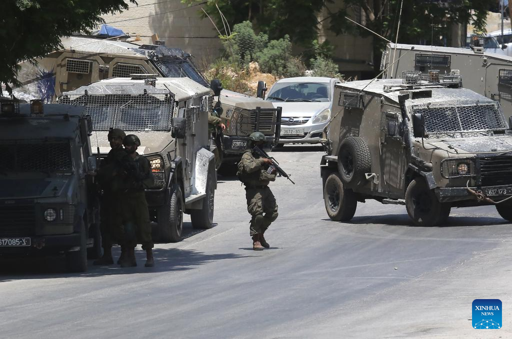 Members of Israeli forces are seen during a military operation in the West Bank city of Nablus, on July 23, 2025. (Photo by Nidal Eshtayeh/Xinhua)