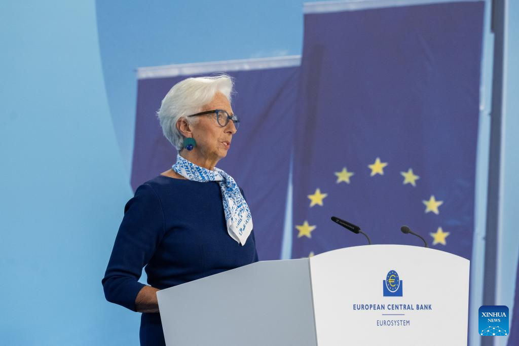 European Central Bank President Christine Lagarde attends a press conference in Frankfurt, Germany, on July 24, 2025. The European Central Bank (ECB) announced on Thursday that it will keep key interest rates unchanged at its latest rate-setting meeting. (ECB/Handout via Xinhua)