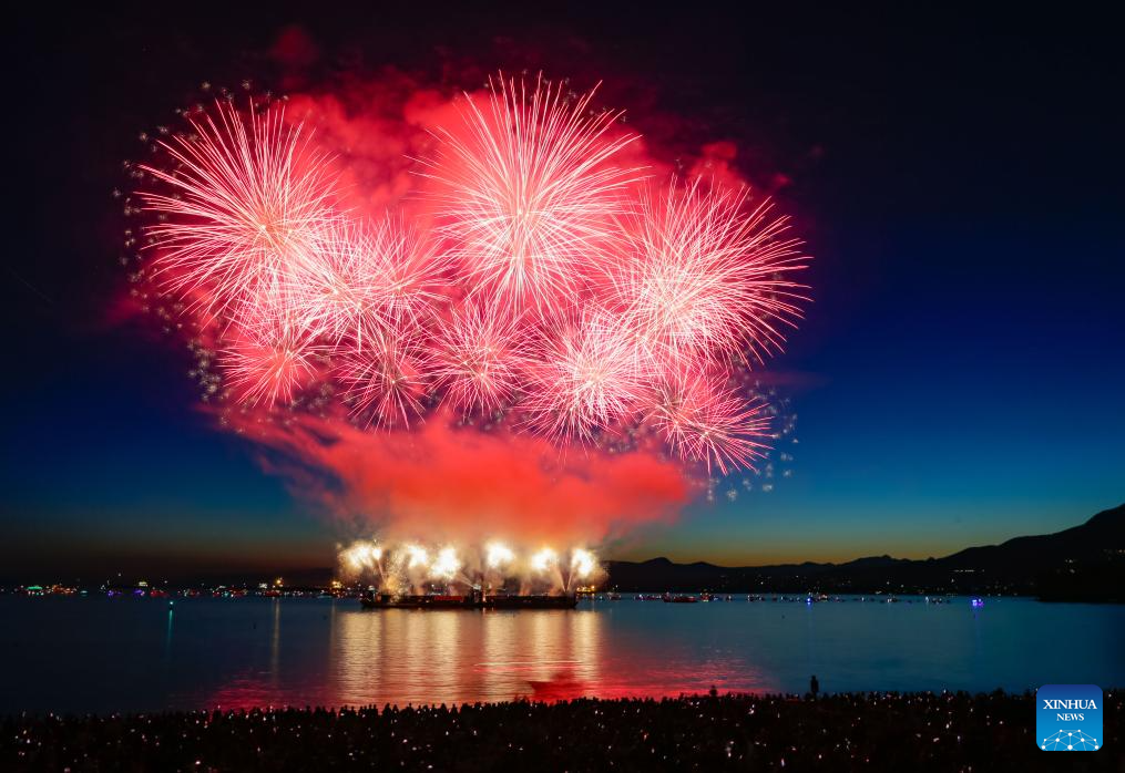 Fireworks light up the sky during the 2025 Celebration of Light at English Bay in Vancouver, British Columbia, Canada, July 23, 2025. (Photo by Liang Sen/Xinhua)