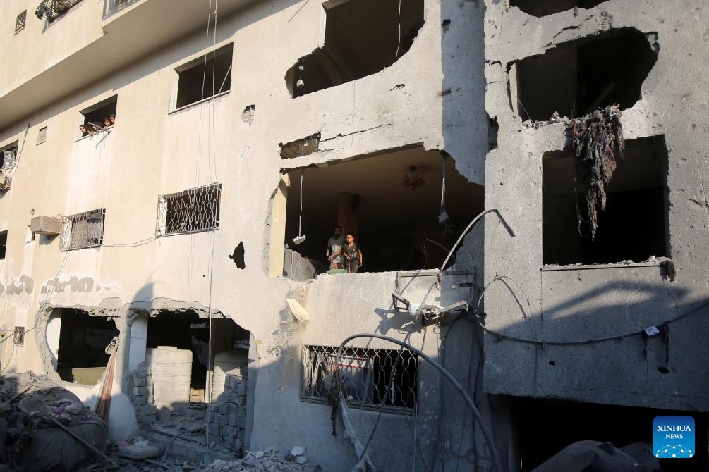 This photo shows a damaged building after an Israeli airstrike in the Tel al-Hawa area, Gaza City, July 23, 2025. Since Israel resumed its military operations in the enclave on March 18, at least 8,363 Palestinians had been killed and 31,004 others injured, bringing the total death toll since October 2023 to 59,219, and injuries to 143,045, Gaza-based health authorities said Wednesday. (Photo by Rizek Abdeljawad/Xinhua)