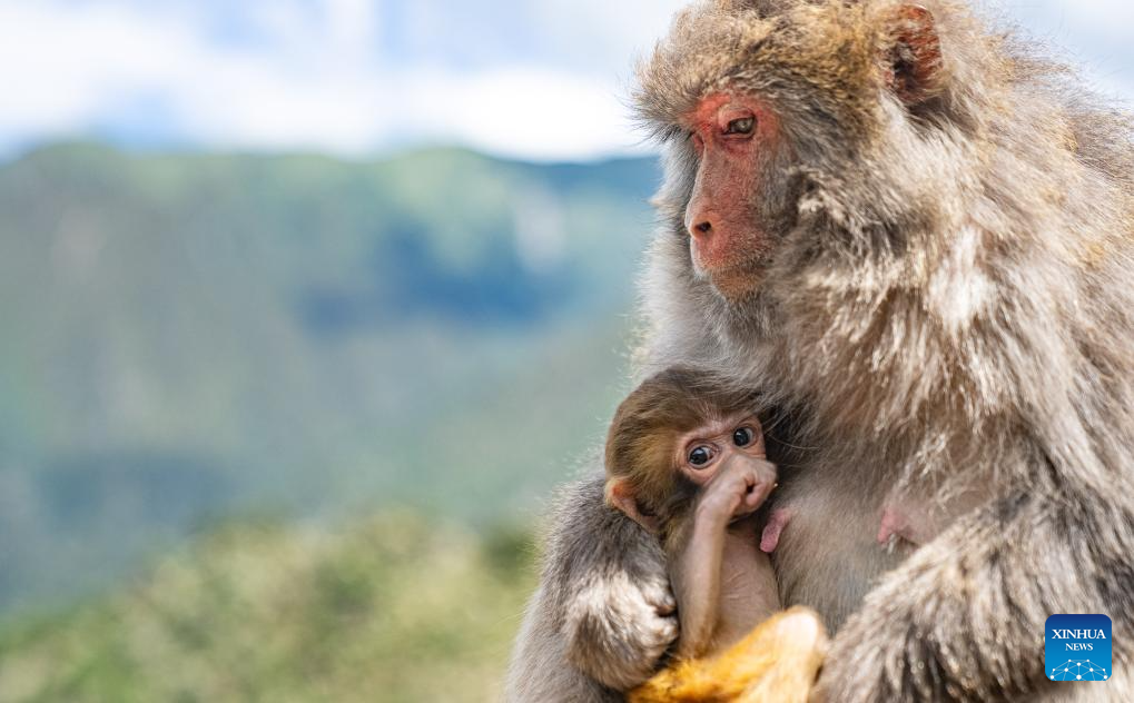 The Tibetan macaque families thrive, with more than 7,000 of them inhabiting here at present. (Xinhua/Tenzin Nyida)