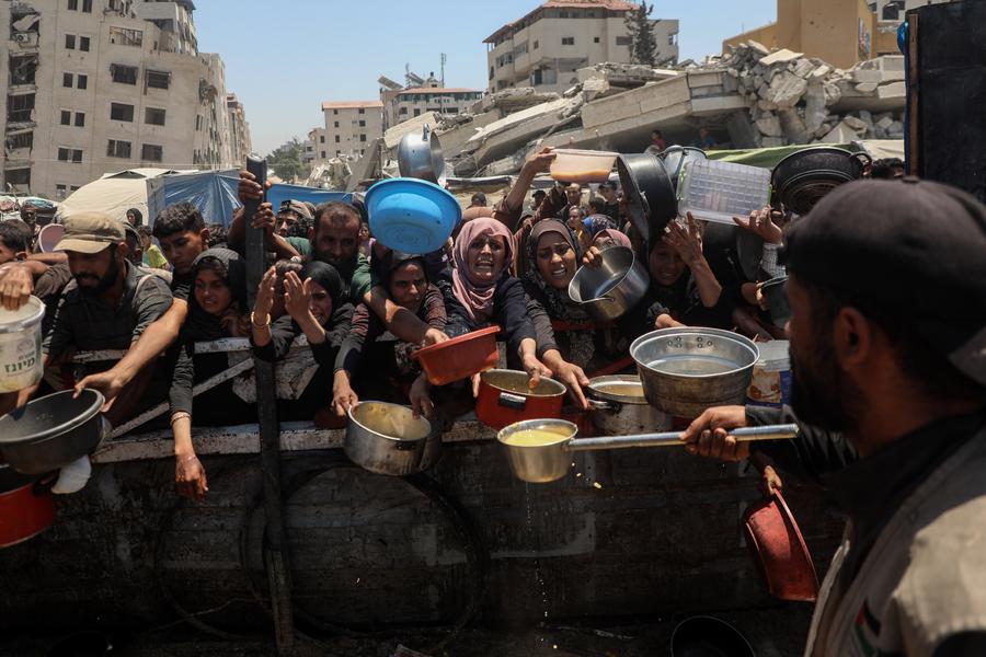 Tobgye observes Tibetan macaques on a tree at Linze ecological and cultural scenic area in Linze Village of Gongbo'Gyamda County, Nyingchi City, southwest China's Xizang Autonomous Region, on July 23, 2025. Linze Village in Gongbo'Gyamda County is a well-known habitat of the Tibetan macaque, a national second-class protected animal. Since serving as a forest ranger around the year of 2000, Tobgye has voluntarily taken on the responsibility of protecting the Tibetan macaques during his mountain patrols. The Tibetan macaque families thrive, with more than 7,000 of them inhabiting here at present. (Xinhua/Tenzin Nyida)A drone photo taken on July 23, 2025 shows staff members examining a cliff painting at Helan Mountain rock painting scenic spot in Yinchuan, northwest China's Ningxia Hui Autonomous Region. Helan Mountain is noted for more than 20,000 cliff paintings and carvings created by the nomads that once lived in northern China. These works depict herding, hunting, sacrificial rites and the lives of the people who lived 3,000 to 10,000 years ago. Images of animals dominate, followed by humans, vehicles, plants, planets, fingerprints and abstract signs. A dedicated office in charge of protecting the cliff paintings was inaugurated in 2002, which has implemented multiple measures to preserve and extend the existence of these paintings since then. (Xinhua/Yang Zhisen)A tourist walks on relics of the ancient path at the Wuhouci Shrine in Mianxian County in Hanzhong, northwest China's Shaanxi Province, July 22, 2025. For more than 2,300 years, Hanzhong has served as a vital nexus for the river network and transportation routes connecting the north and south. (Xinhua/Li Yibo)Residents evacuate in Surin Province, Thailand, following Thailand-Cambodia border clash on July 24, 2025. (Xinhua)Palestinians wait to receive free food from a charity kitchen in Gaza City, on July 24, 2025. The Palestinians are facing "the biggest humanitarian catastrophe" of their time amid the ongoing conflict in Gaza and the West Bank, due to the failure of global efforts to deter Israeli actions, Palestinian President Mahmoud Abbas said Thursday. (Photo by Rizek Abdeljawad/Xinhua)This photo shows a damaged building after an Israeli airstrike in the Tel al-Hawa area, Gaza City, July 23, 2025. Since Israel resumed its military operations in the enclave on March 18, at least 8,363 Palestinians had been killed and 31,004 others injured, bringing the total death toll since October 2023 to 59,219, and injuries to 143,045, Gaza-based health authorities said Wednesday. (Photo by Rizek Abdeljawad/Xinhua)Fireworks light up the sky during the 2025 Celebration of Light at English Bay in Vancouver, British Columbia, Canada, July 23, 2025. (Photo by Liang Sen/Xinhua)A firefighting helicopter drops water to put out fire at Souni village in Limassol, Cyprus, on July 24, 2025. Two people have been confirmed dead and dozens evacuated as a massive wildfire continued to burn out of control in the mountainous areas of Limassol District in southern Cyprus, authorities said Thursday. (Photo by George Christophorou/Xinhua)Lin Yanhan/Lin Yanjun of China perform during the women's duet free final of artistic swimming at the World Aquatics Championships in Singapore, July 24, 2025. (Xinhua/Xia Yifang)■