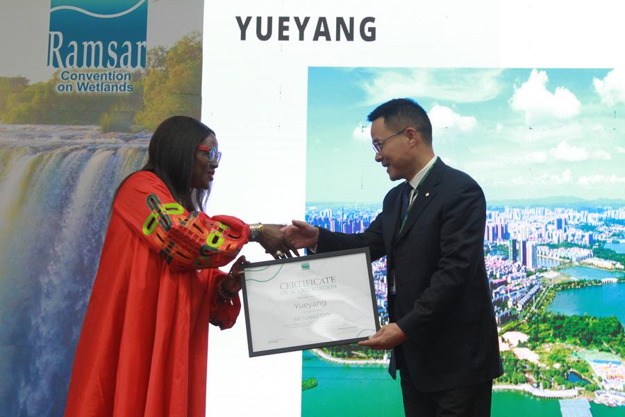 VICTORIA FALLS, Zimbabwe, July 25 (Xinhua) -- A total of nine Chinese cities were accredited as international wetland cities on Thursday during the opening of the 15th Meeting of the Conference of the Contracting Parties to the Ramsar Convention on Wetlands (COP15) held in Zimbabwe's resort city of Victoria Falls, bringing the total number of such cities in China to 22, the highest in the world.