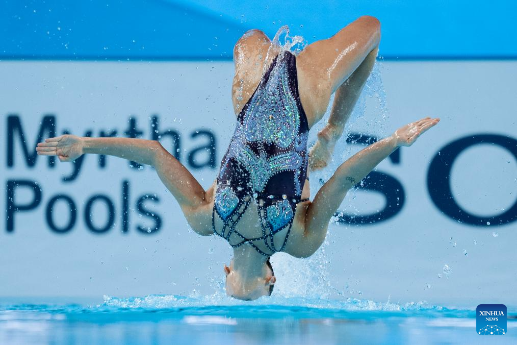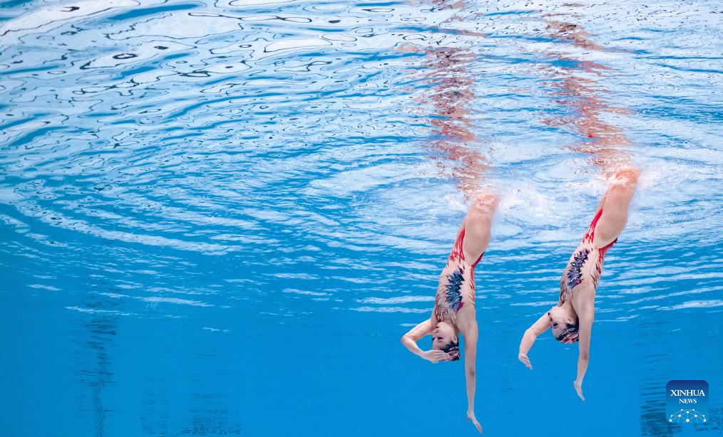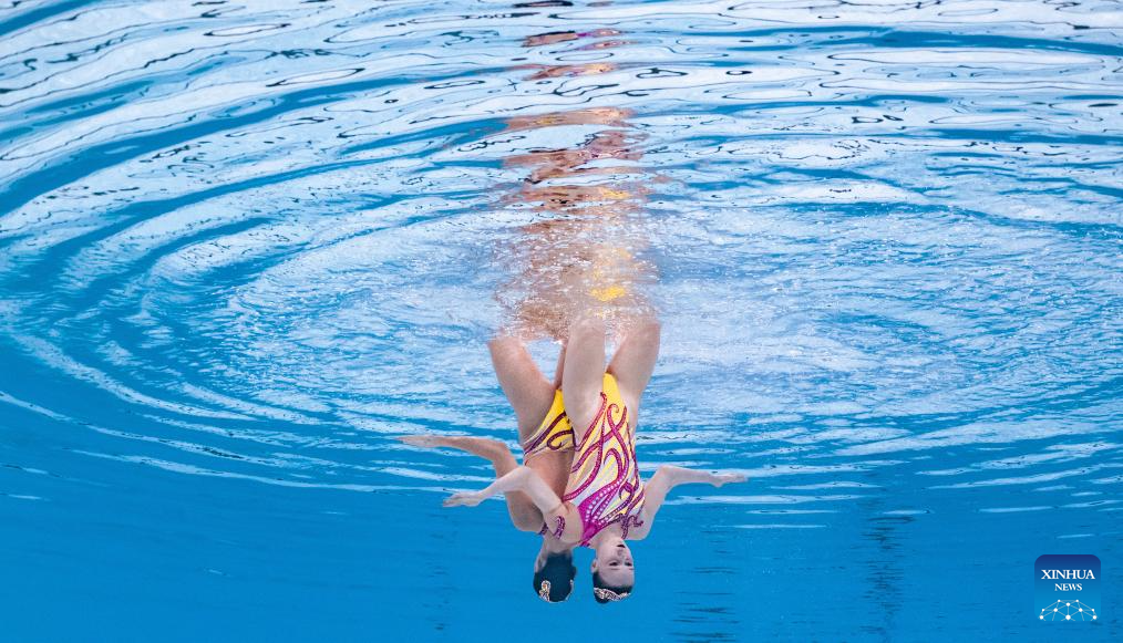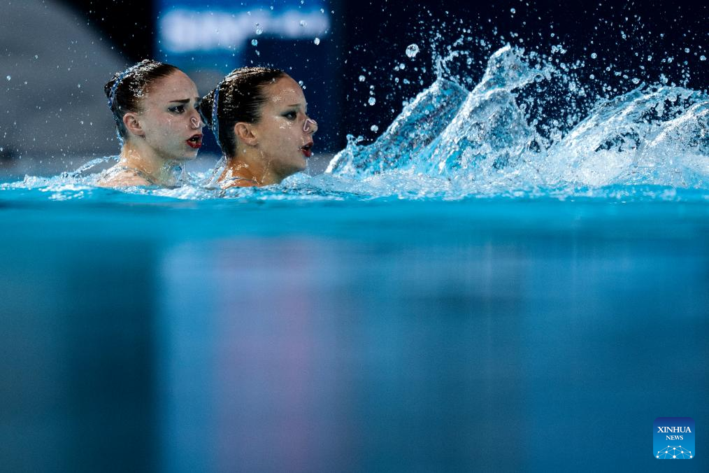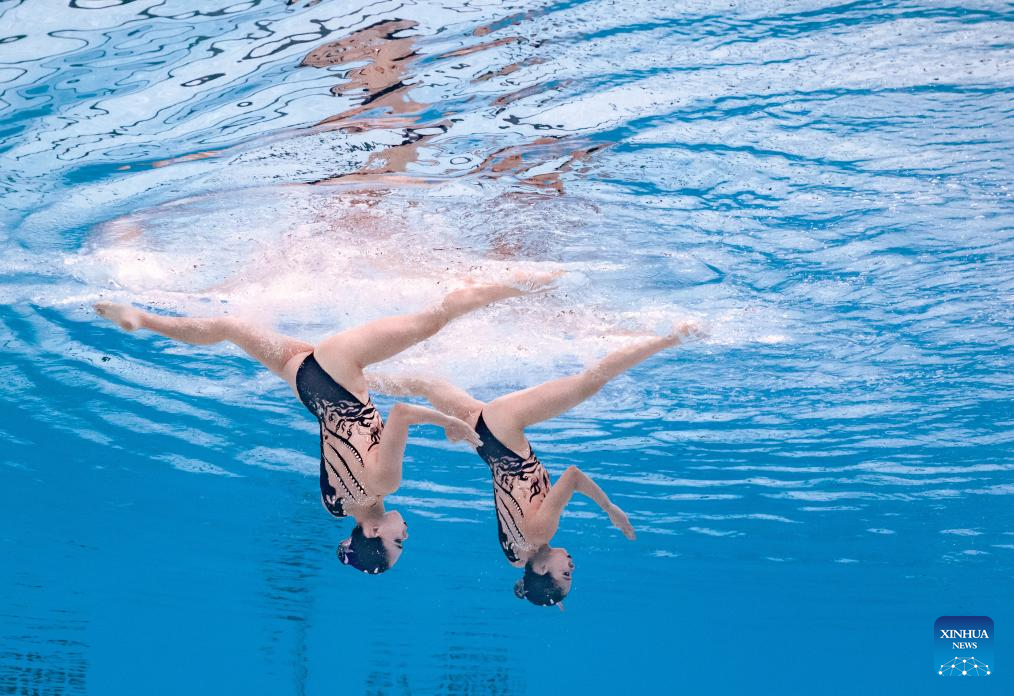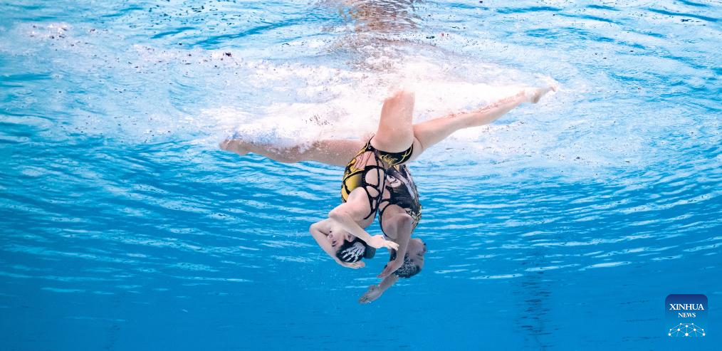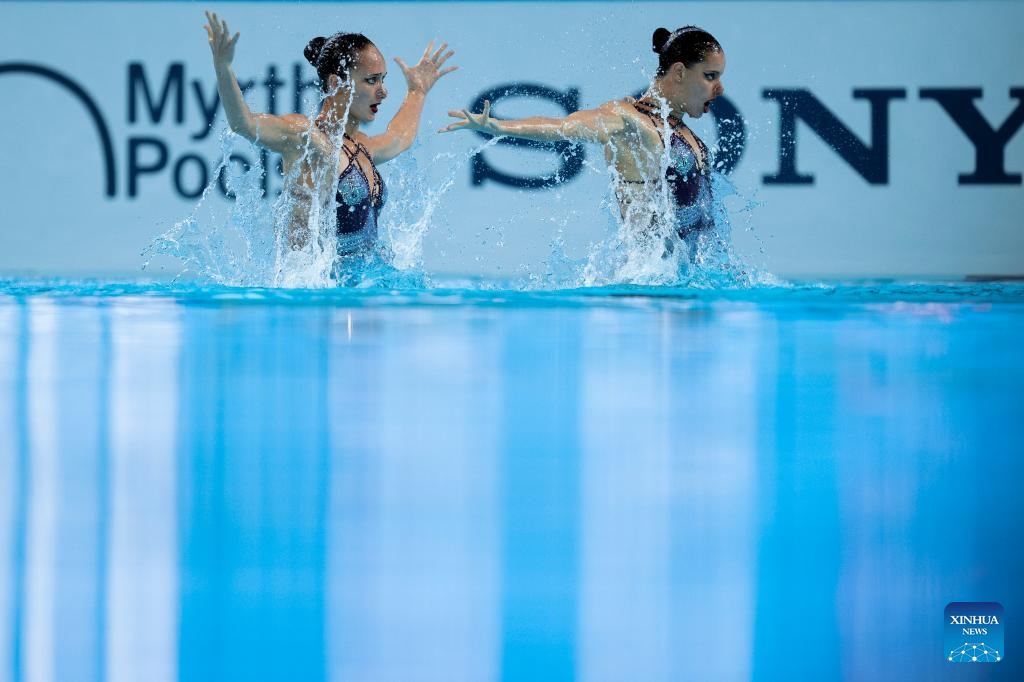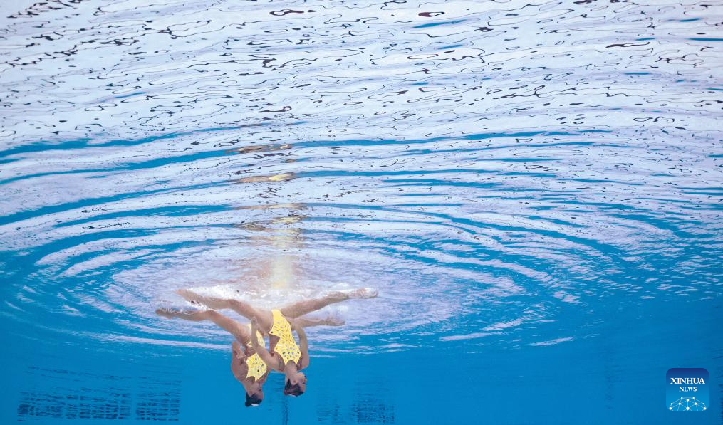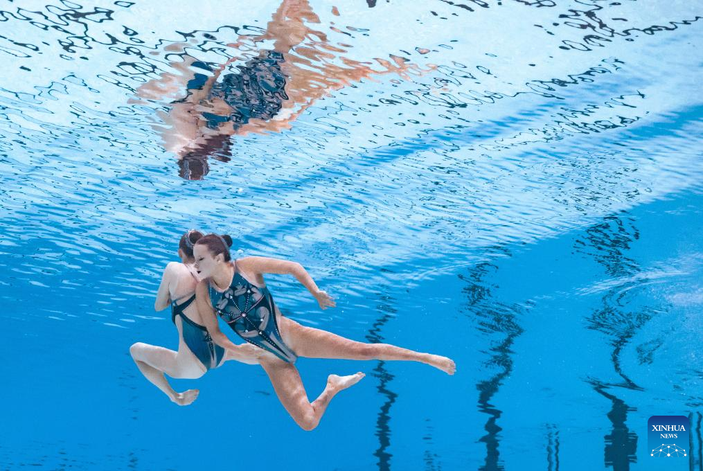 Lilou Lluis Valette/Iris Tio Casas of Spain perform during the women's duet free final of artistic swimming at the World Aquatics Championships in Singapore, July 24, 2025. (Xinhua/Wu Zhizun)