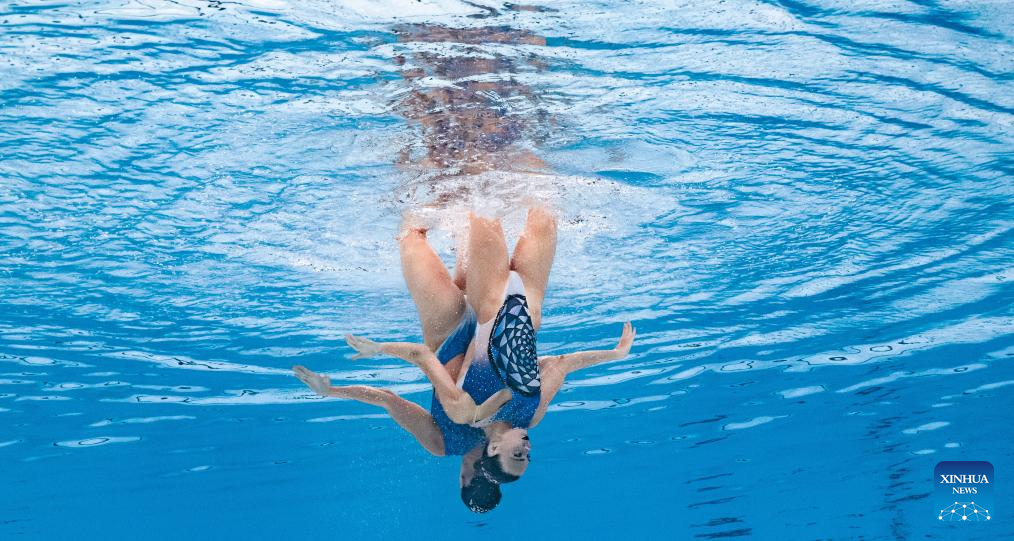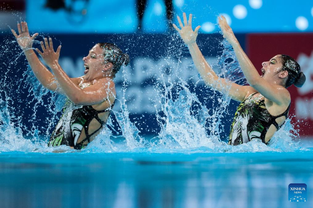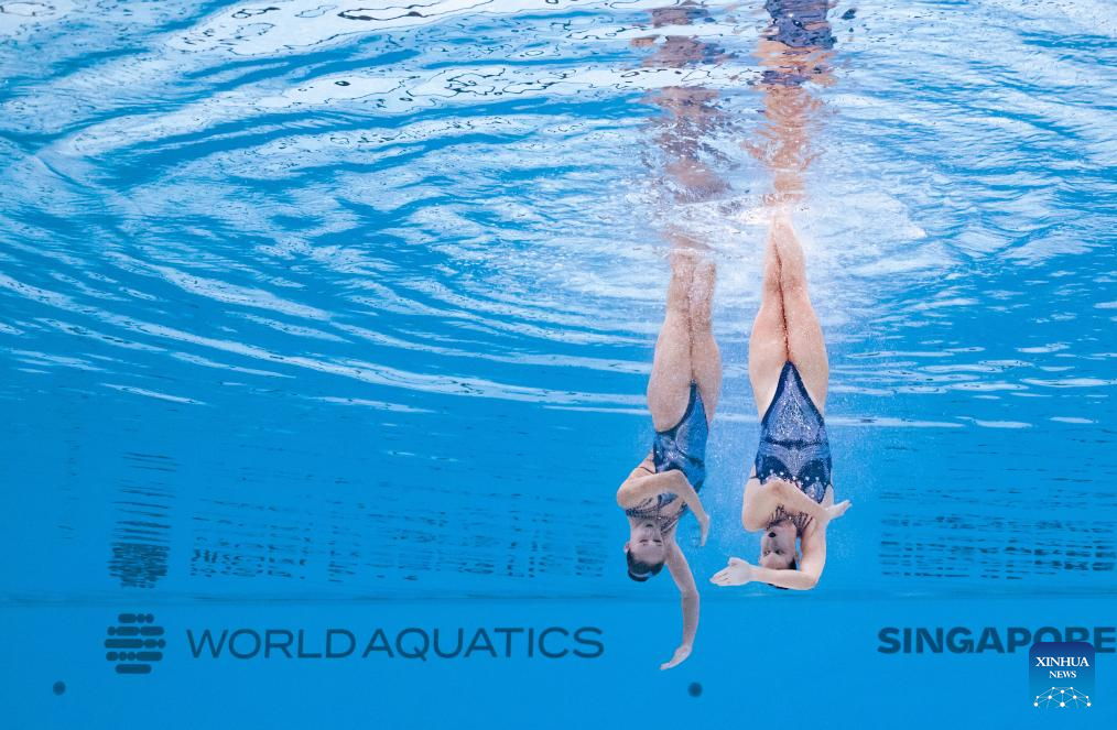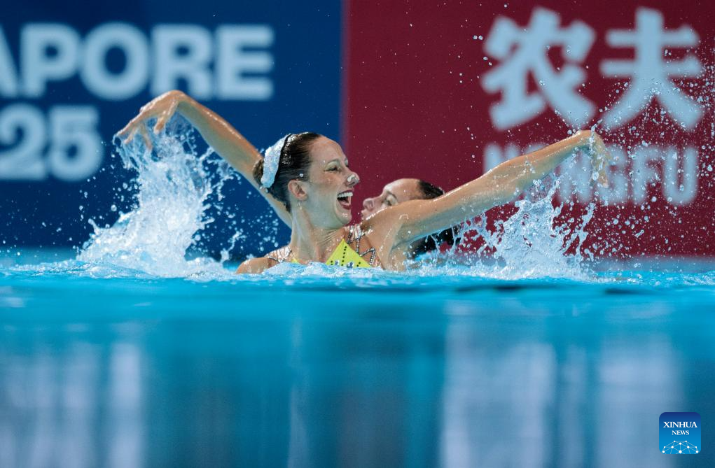 Enrica Piccoli/Lucrezia Ruggiero of Italy perform during the women's duet free final of artistic swimming at the World Aquatics Championships in Singapore, July 24, 2025. (Xinhua/Wu Zhizun)