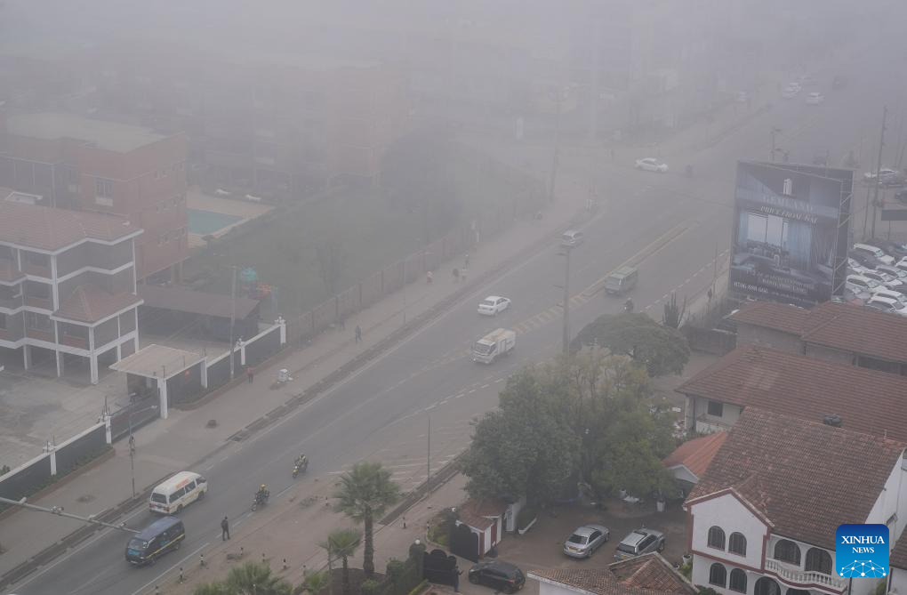 This photo taken on July 25, 2025 shows buildings shrouded in fog in Nairobi, Kenya. Thick fog blanketed Nairobi in the morning of Friday. (Xinhua/Han Xu)