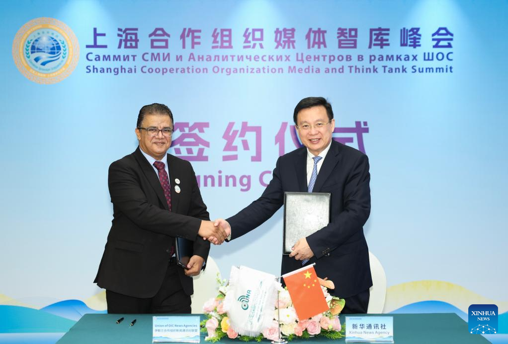 ZHENGZHOU, July 24 (Xinhua) -- Xinhua News Agency signed cooperation agreements with several foreign media organizations on Thursday during the Shanghai Cooperation Organization (SCO) Media and Think Tank Summit held in Zhengzhou, central China's Henan Province.