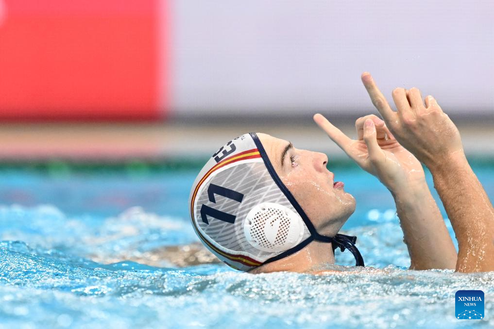 Unai Biel Lara of Spain reacts during the water polo men's gold medal match between Spain and Hungary at the World Aquatics Championships 2025 in Singapore on July 24, 2025. (Xinhua/Xue Yuge)