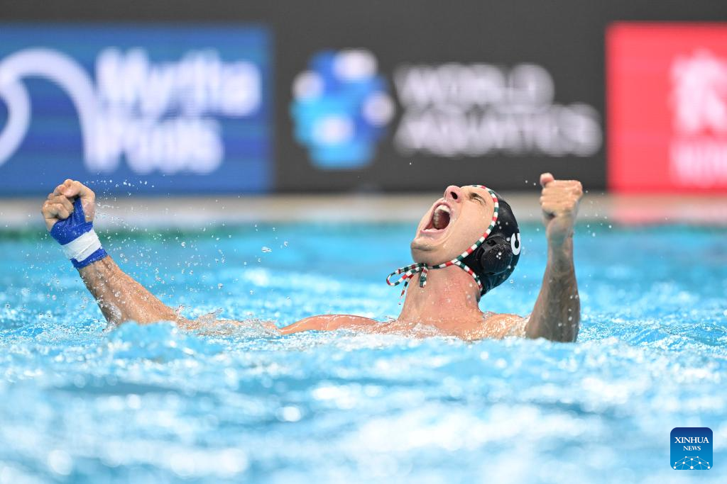 Krisztian Manhercz of Hungary reacts during the water polo men's gold medal match between Spain and Hungary at the World Aquatics Championships 2025 in Singapore on July 24, 2025. (Xinhua/Xue Yuge)