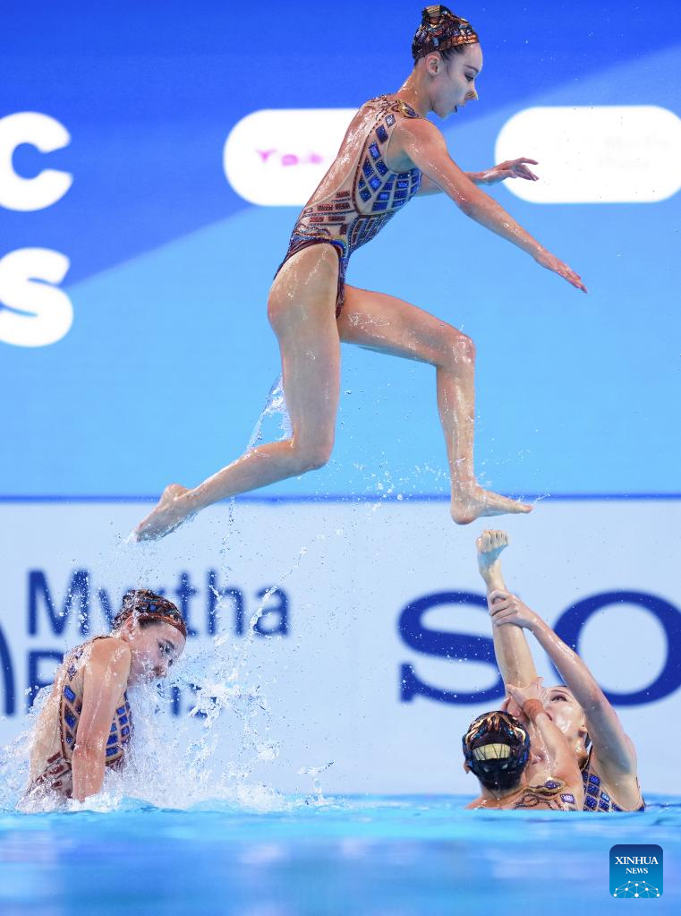 Team China perform during the team acrobatic final of artistic swimming at the World Aquatics Championships in Singapore, July 25, 2025. (Xinhua/Wu Zhizun)