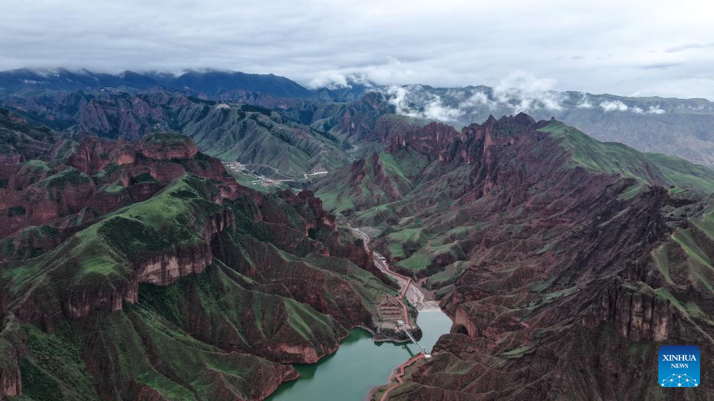 An aerial drone photo taken on July 24, 2025 shows a view of the Kanbula National Geopark in Huangnan Tibetan Autonomous Prefecture, northwest China's Qinghai Province. (Xinhua/Qi Zhiyue)